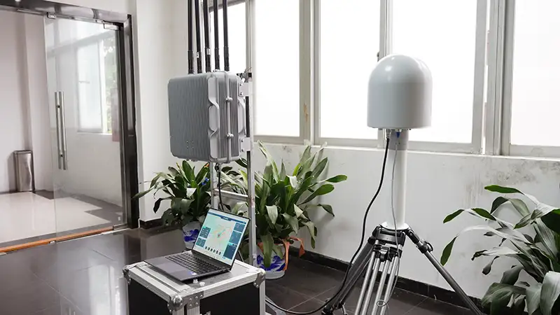 Varnostni obrambni sistem 5 km brezpilotnih letal zazna UAV Detection skenira frekvenčno območje 700–6300 MHz in zazna brezpilotna letala do 5 km stran (razdalja nastavljiva z anteno). Detektor dekodira signale DJI FPV, natančno določi položaj pilota, upravlja sezname dovoljenih/blokiranih in zagotavlja video vir za vizualni pregled. Detektor ima 360° pokritost in se lahko hitro poveže z motilci, da se hitro odzove na grožnje, kar omogoča spremljanje v realnem času in inteligentne protiukrepe na območjih z visoko varnostjo.