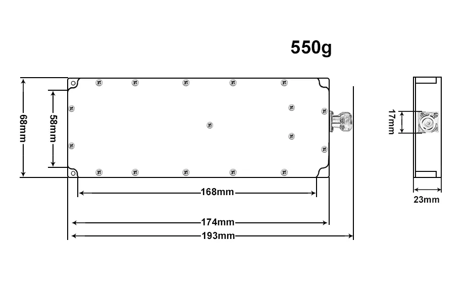 Videz tega modula ojačevalnika signala digitalnega vira GaN 100 W z zaščito kroga je izdelan iz aluminija, s funkcijo zaščite obroča lahko zaščiti modul in okoliška vezja v neobičajnih pogojih, kot so prevelik tok, prenapetost, pregrevanje itd., kar zagotavlja stabilno delovanje sistema in podaljšuje njegovo življenjsko dobo. Ta modul uporablja običajne priključke RF, kot sta SMA in N-tip, kar je primerno za povezovanje z drugimi napravami RF.