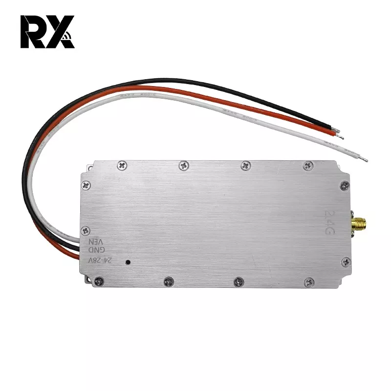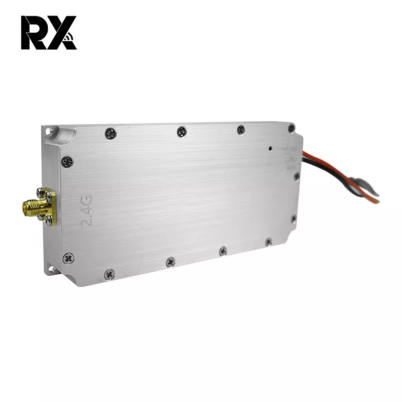 Ta vroče prodajani modul za motenje signala 2,4 G 50 W za drone z izhodno močjo 50 W lahko ustvari močne RF signale. Pokriva frekvenčno območje 2400–2485 MHz, ki ga brezpilotna letala običajno uporabljajo za komunikacijo, nadzor, daljinske signale, prenos slike in satelitske funkcije, njegova zmogljiva izhodna moč 50 W omogoča, da motilni signali preglasijo zakonite signale brezpilotnih letal. Posledično dejansko moti normalno delovanje brezpilotnih letalnikov in jim onemogoča delovanje po načrtih.