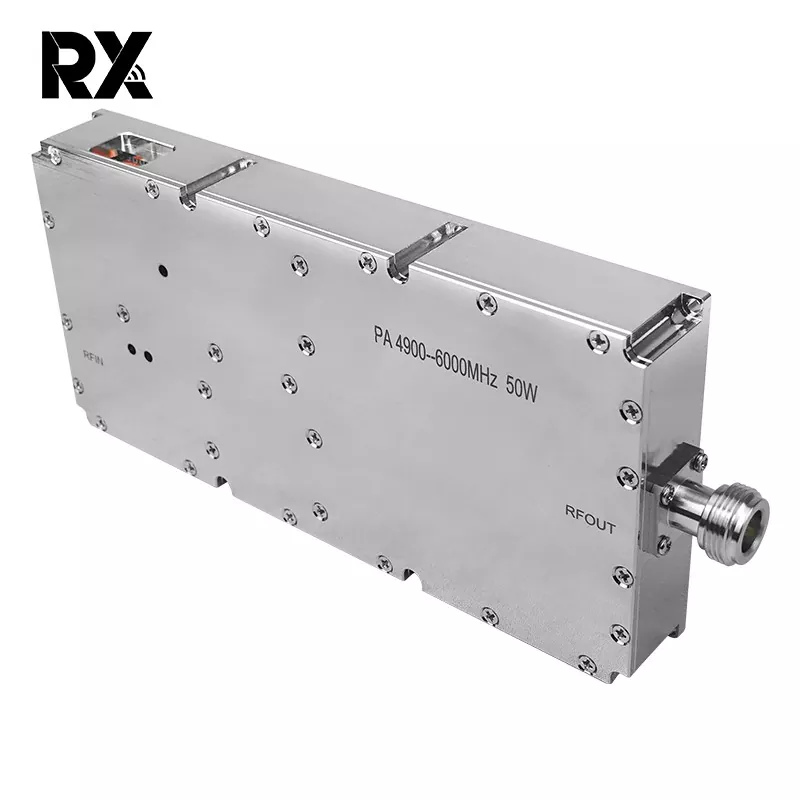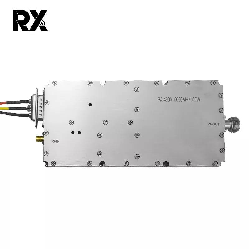 Ultra Band WiFi 5G Signal Jammer Power Amplifier 50 W je visoko zmogljiv RF ojačevalni modul, zasnovan za motenje visokofrekvenčnega signala in zaščito. Modul pokriva ultra širokopasovno frekvenčno območje in je združljiv z WiFi 6, 5G komunikacijami in drugimi visokofrekvenčnimi brezžičnimi signali. Primeren je za potrebe zaščite signala v posebnih scenarijih. Kakovost modulov, ki jih proizvaja RX, je zagotovljena. Vidimo lahko, da imajo izdelki RX pomembno vlogo tako na vojaškem kot civilnem področju.